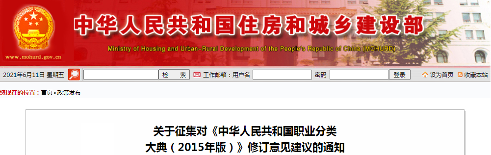 住房和城鄉建設部征集對《中華人民共和國職業分類大典(2015年版)》的修訂意見建議