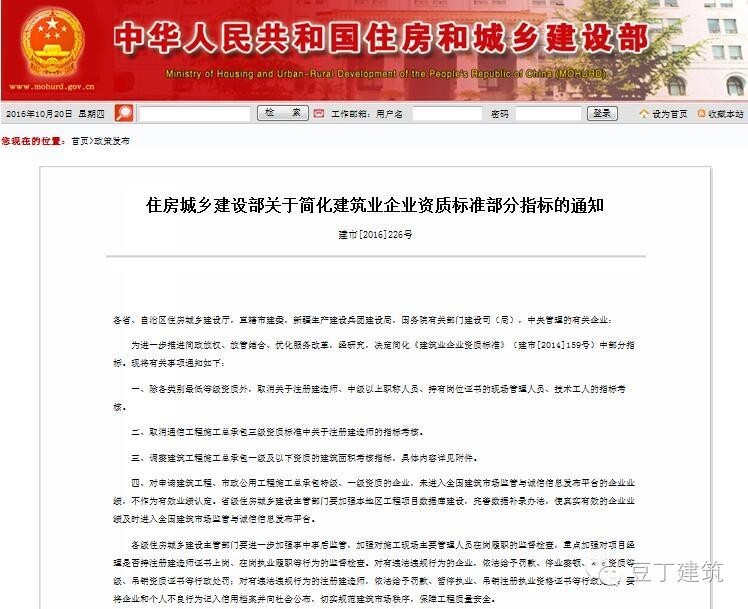 解讀住房城鄉建設部關于簡化建筑業企業資質標準部分指標的通知 建市[2016]226號